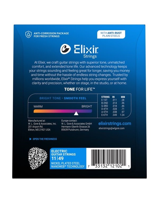Οι χορδές ηλεκτρικής κιθάρας Elixir® Electric Nickel Plated Steel με επίστρωση NANOWEB® προσφέρουν την παρουσία, τη διάτρηση και την προσωπικότητα των παραδοσιακών χορδών ηλεκτρικής κιθάρας αλλά με εκτεταμένη διάρκεια ζωής.